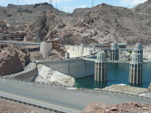 We proceed across Hoover Dam without incident. Lake Mead's water level was shockingly low, a testament to the
