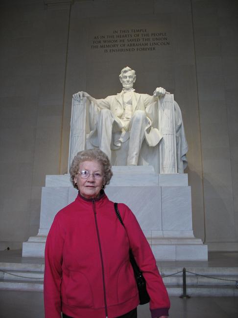 Mom on the steps leading up to the Lincoln Memorial